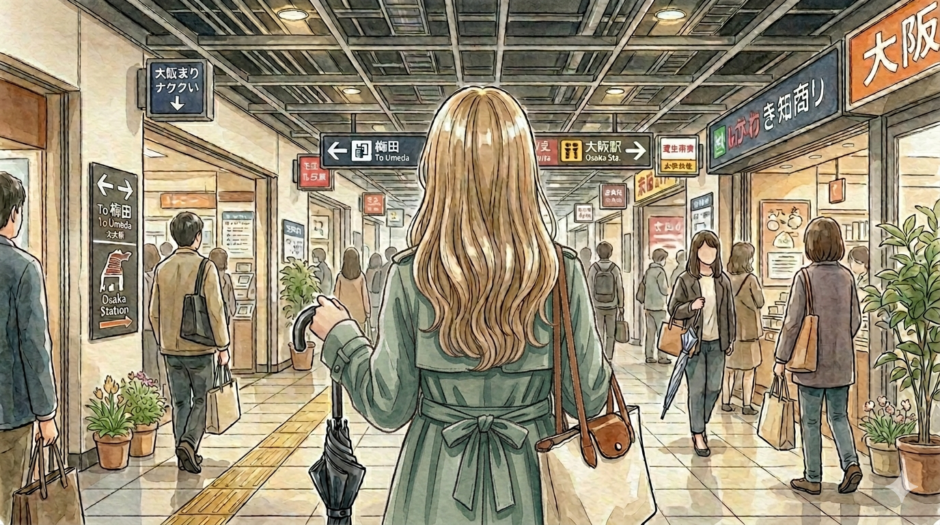​先日見つけた「地下街から濡れずにハローワークへ行けるルート」!